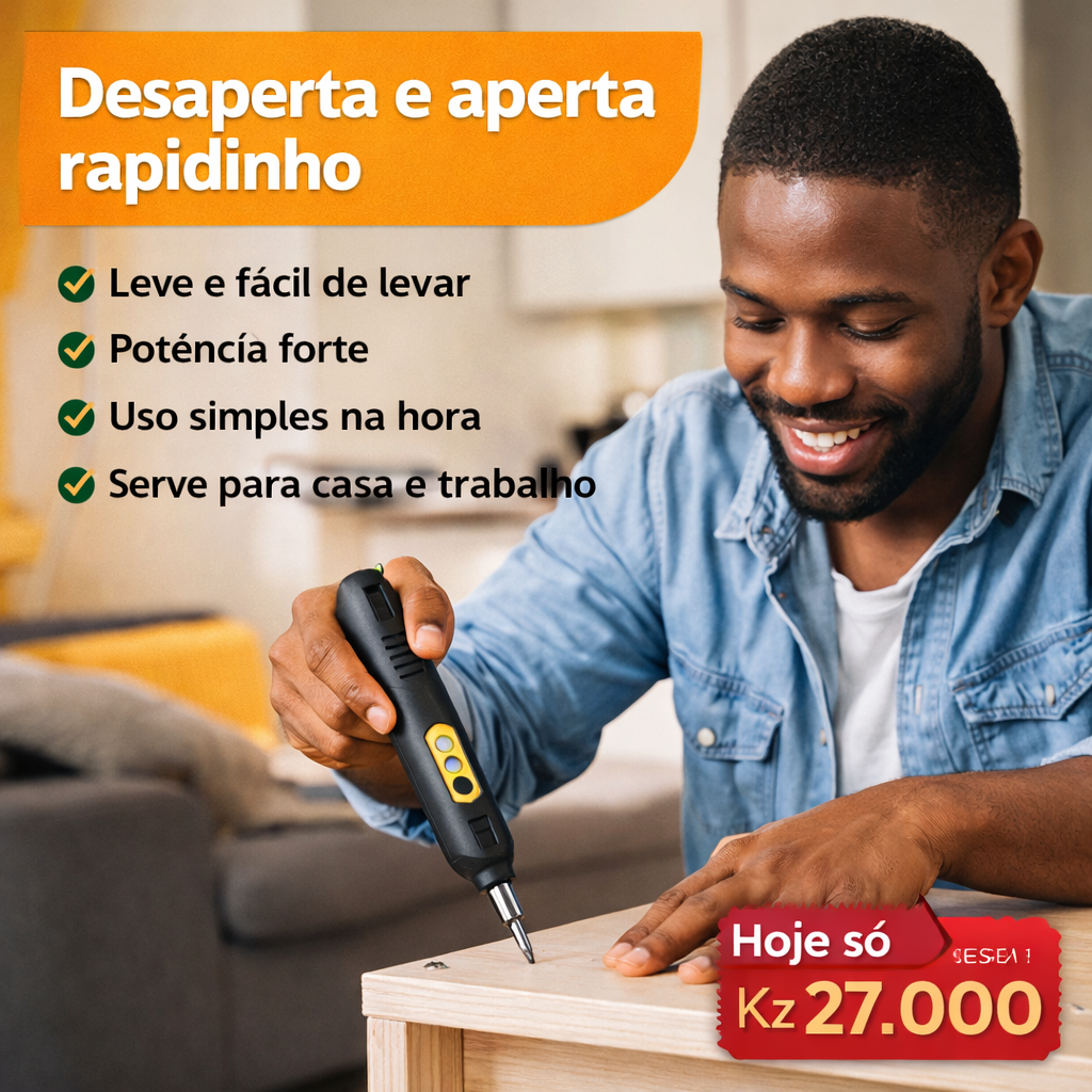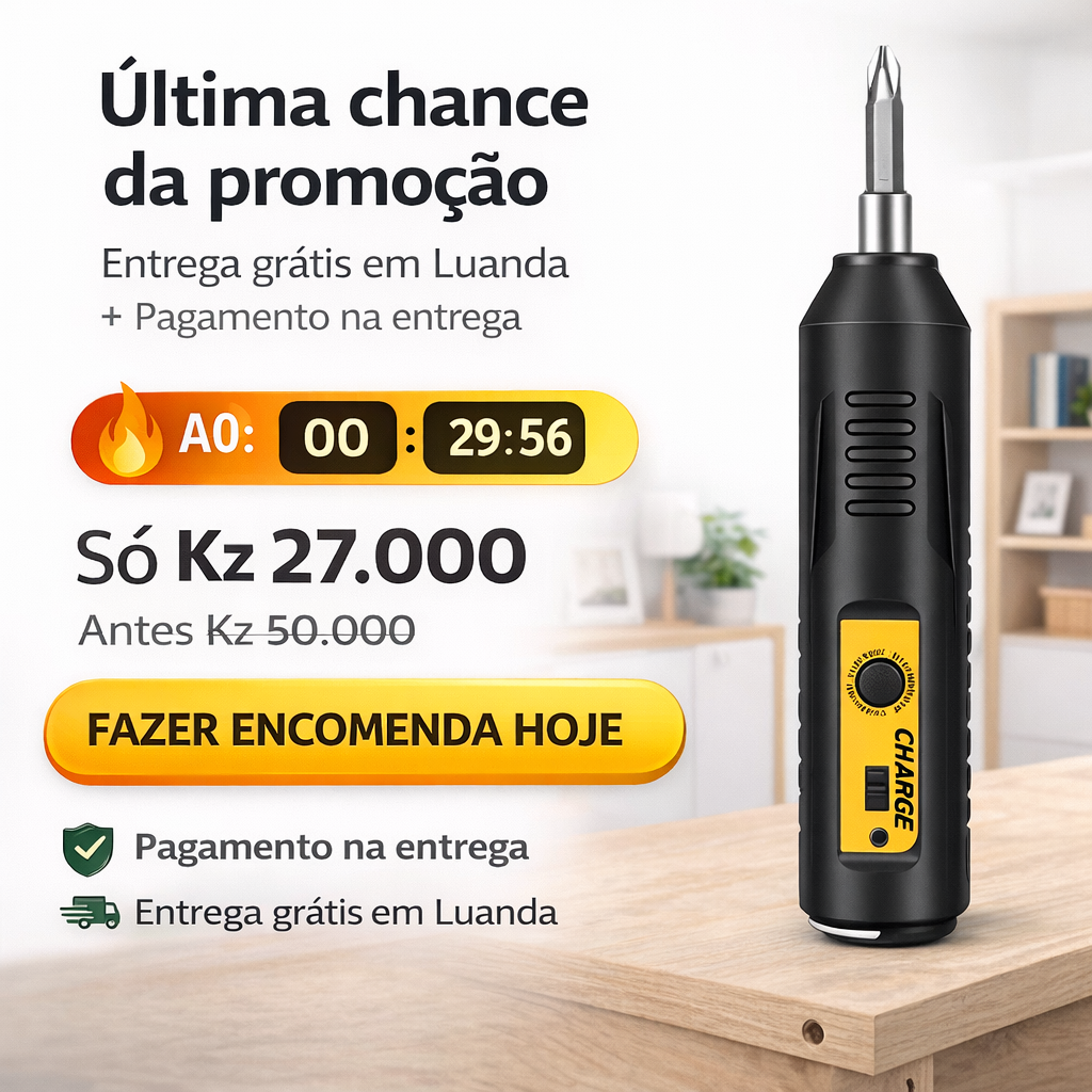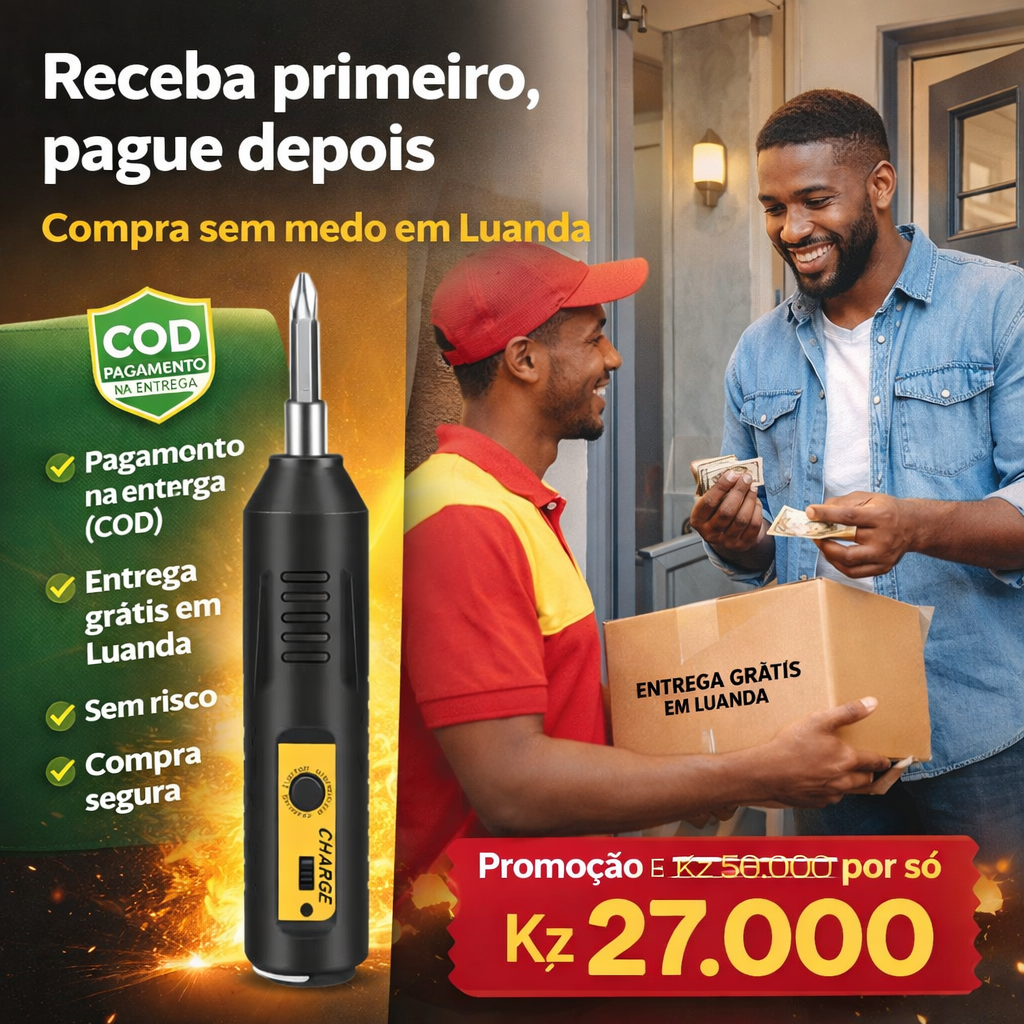 - Entrega Grátis em Luanda: Receba o seu destornillador no conforto da sua casa ou local de trabalho, sem custos adicionais de frete.