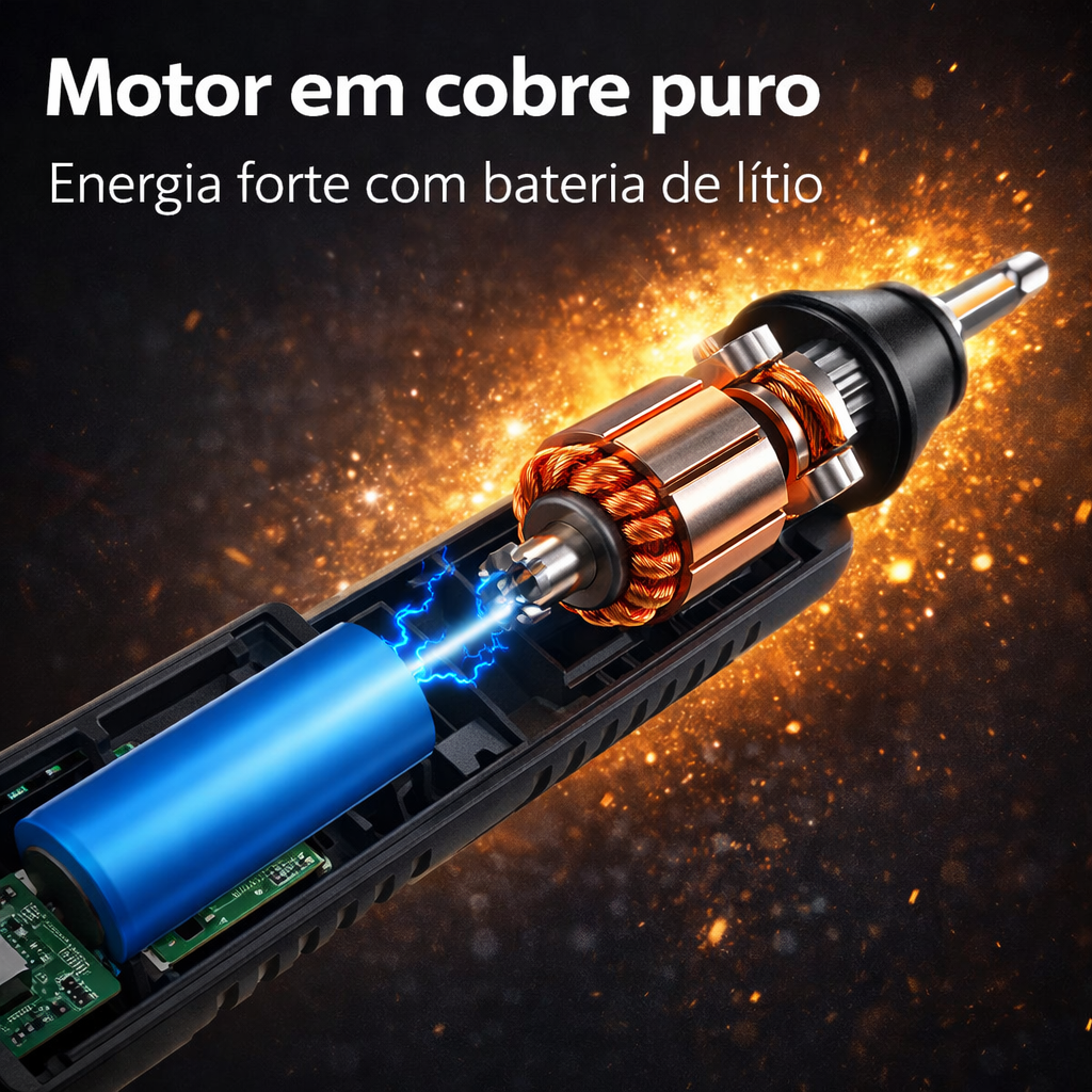 - Conteúdo da embalagem: Destornillador, cabo de carregamento USB, manual de instruções em português